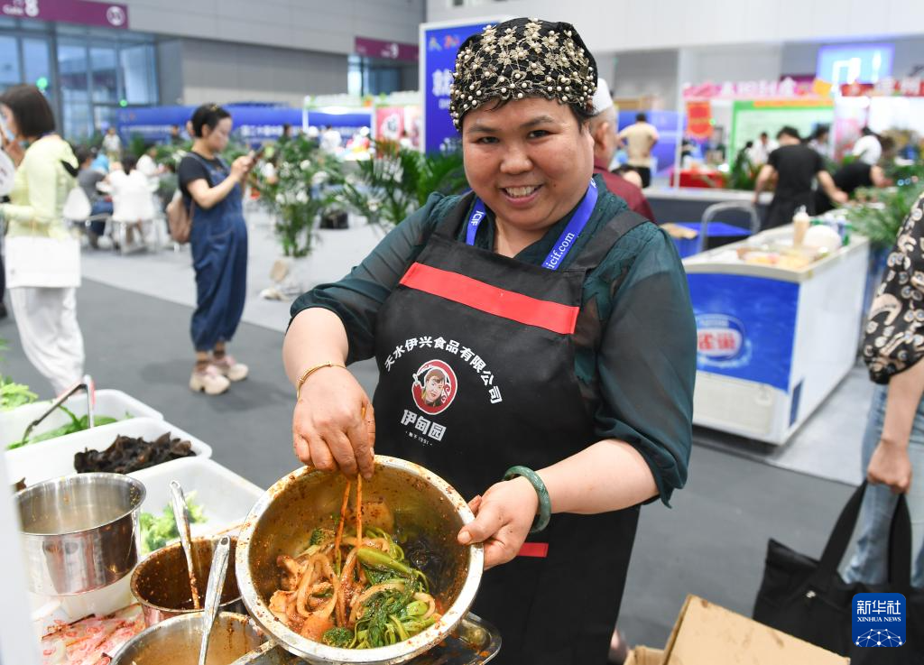 5月23日,来自甘肃天水的参展商在第二十届文博会现场展示天水麻辣烫。
