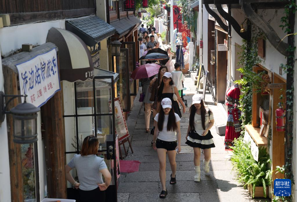 6月16日,人们在杭州小河直街历史文化街区游玩。