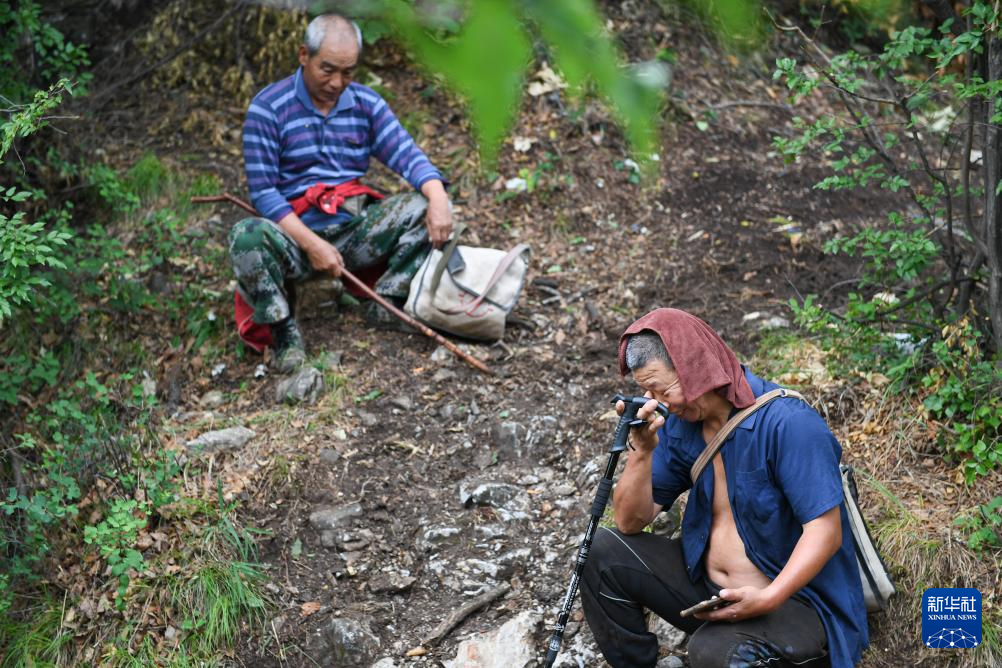 技工杨战杰在箭扣长城120号敌台考古现场观察一片挖出的瓷器残片(7月2日摄)。