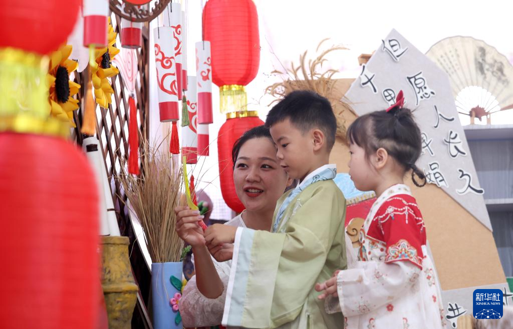 当日,河北省石家庄市藁城区通安幼儿园开展迎中秋幼儿民俗主题活动,孩子们在老师的指导下做月饼、猜灯谜,感受传统民俗的魅力。