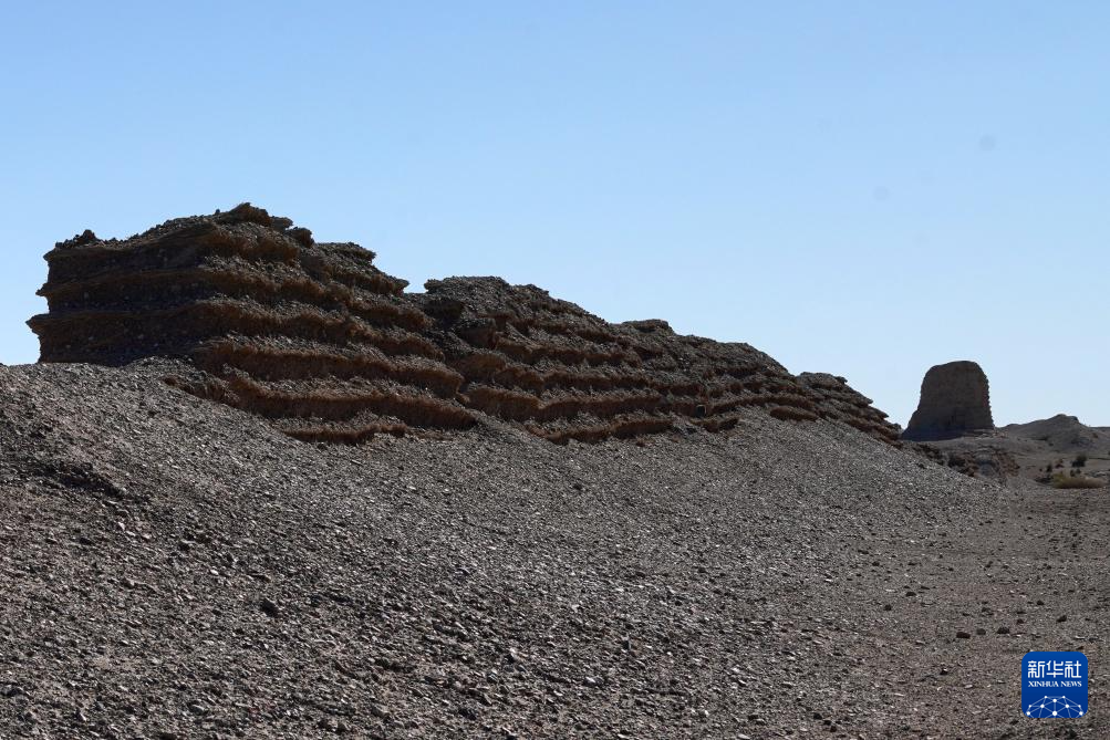 7月16日在甘肃省敦煌市玉门关遗址区拍摄的大方盘城。大方盘城临疏勒河而建,故称河仓城,用于存储粮草。