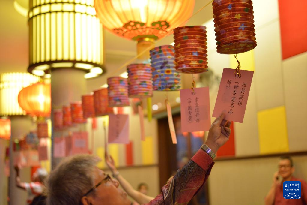 9月17日,在马来西亚雪兰莪州巴生,民众参加猜灯谜活动庆祝中秋。