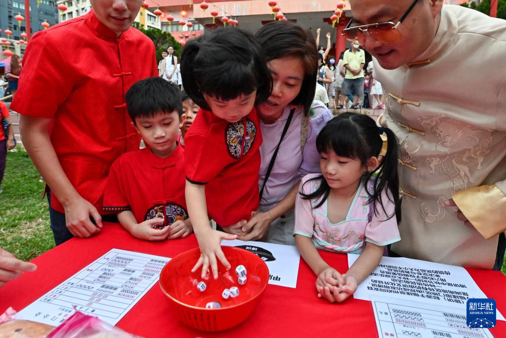 中秋临近,在福建厦门和马来西亚巴生举办的中秋庆祝活动上,博饼游戏都吸引了不少人参与。在游戏中,人们通过掷骰子赢取各式各样的饼及生活用品。饼为圆形,人们玩博饼游戏时围在一起,取中秋团圆之意。