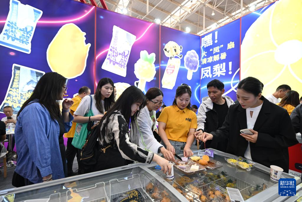 9月26日,在天津梅江会展中心,观众参观、品尝文创冰淇淋。