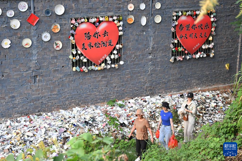 9月26日,游客在醴陵市一处“低价捡瓷区”挑选瓷器后离开。