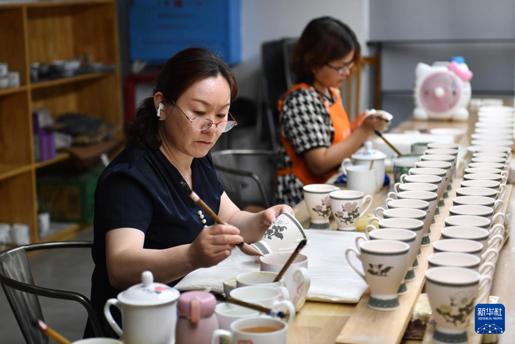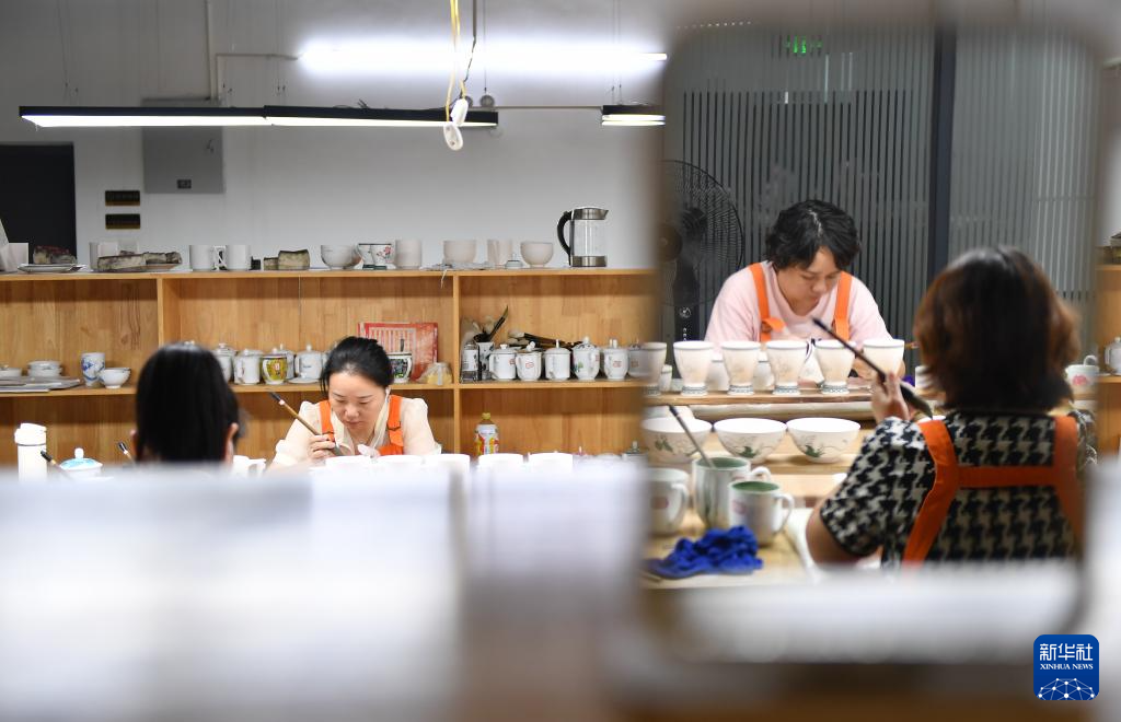 9月27日,醴陵釉下五彩瓷烧制技艺省级非遗代表性传承人申彬在制作陶瓷彩绘。