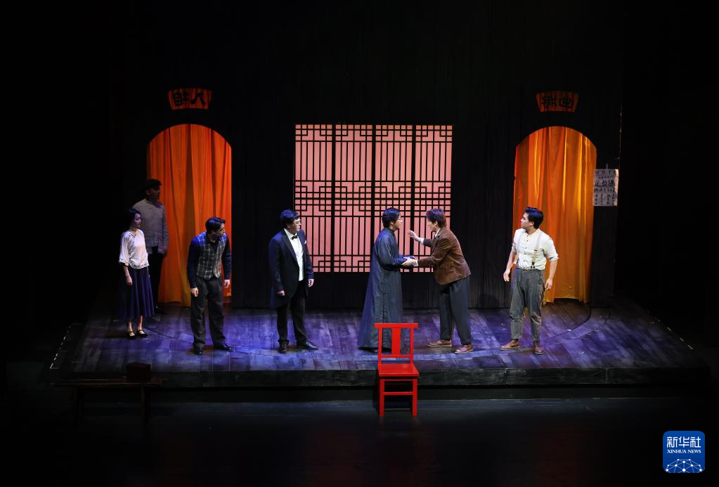 10月26日,在广西省立艺术馆,演员表演话剧《戏剧春秋》。