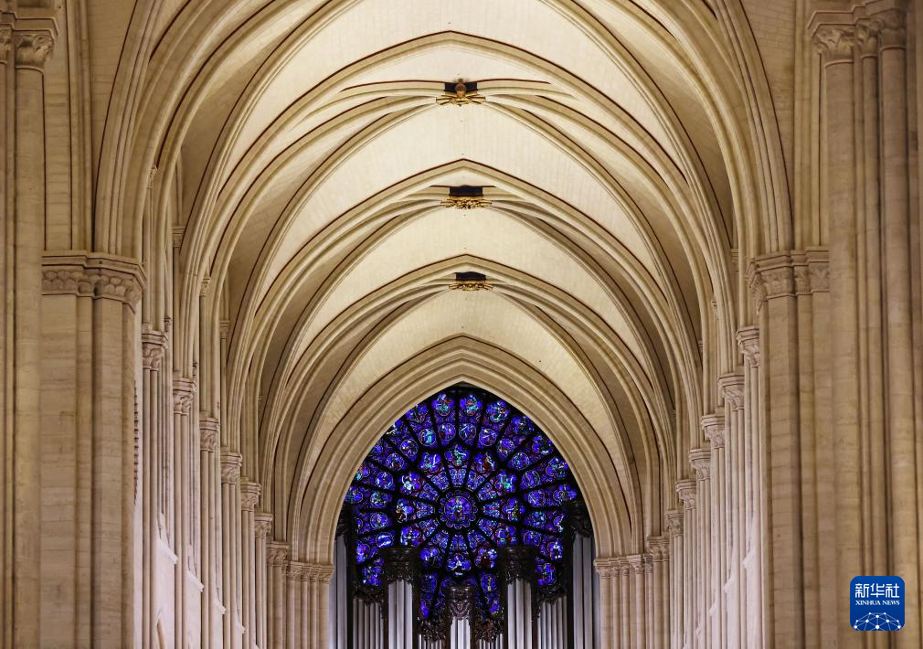 这是12月8日拍摄的巴黎圣母院内景。