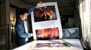 12月9日,在安徽省黄山市黟县宏村,何继星(中)和学员在查看花灯。