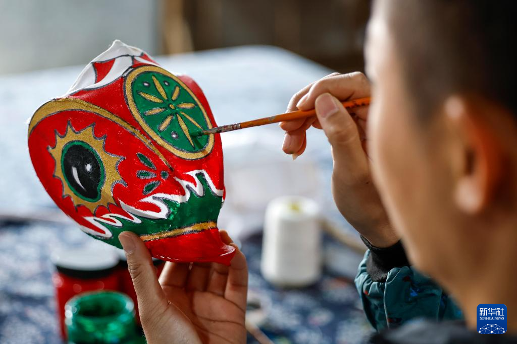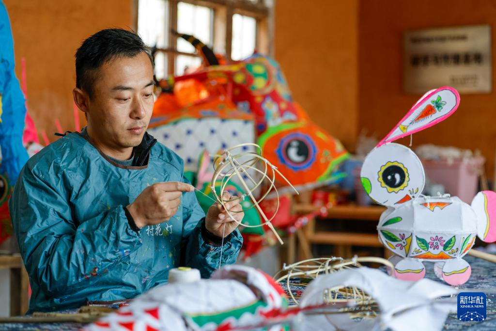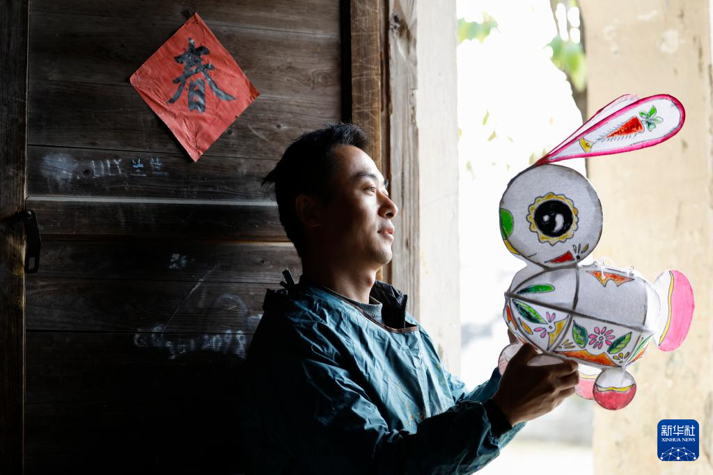 12月9日,在安徽省黄山市黟县宏村,何继星在制作花灯。
