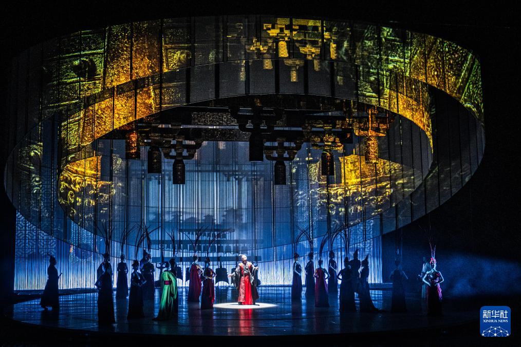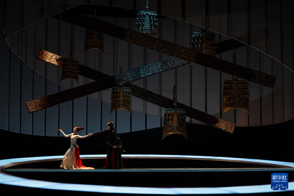 当日,原创舞剧《乐和长歌》在武汉首演。该剧以春秋战国时期为历史背景,编排融入楚文化独特的编钟古乐、舞蹈、辞赋等元素,为观众打造了耳目一新的荆风楚韵舞台作品。
