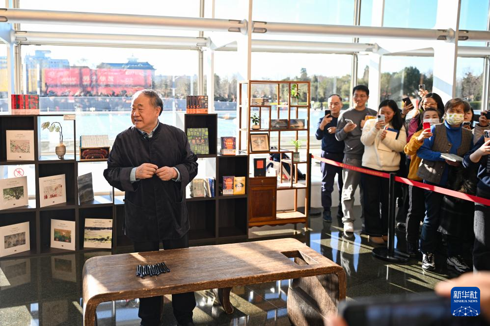 12月22日,作家莫言在国家大剧院的签名见面会上。