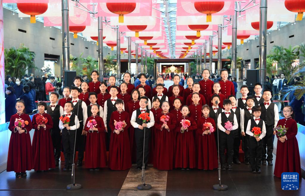 12月22日,小朋友在国家大剧院北水下廊道童声合唱迎宾。