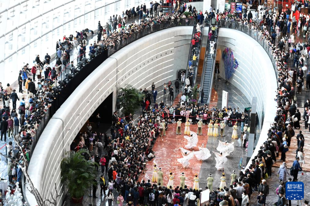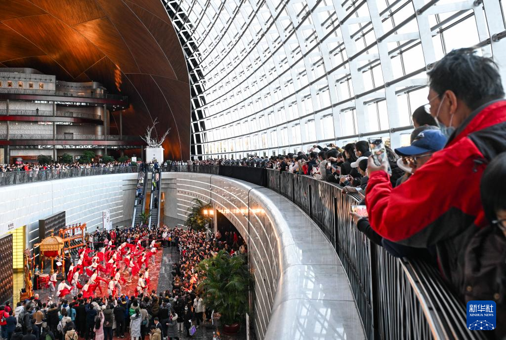 12月22日,演员在国家大剧院一层公共空间表演。