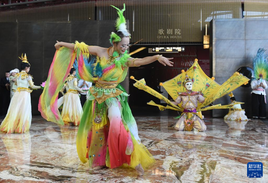 12月22日,演员在国家大剧院橄榄厅表演云南西双版纳非遗歌舞。