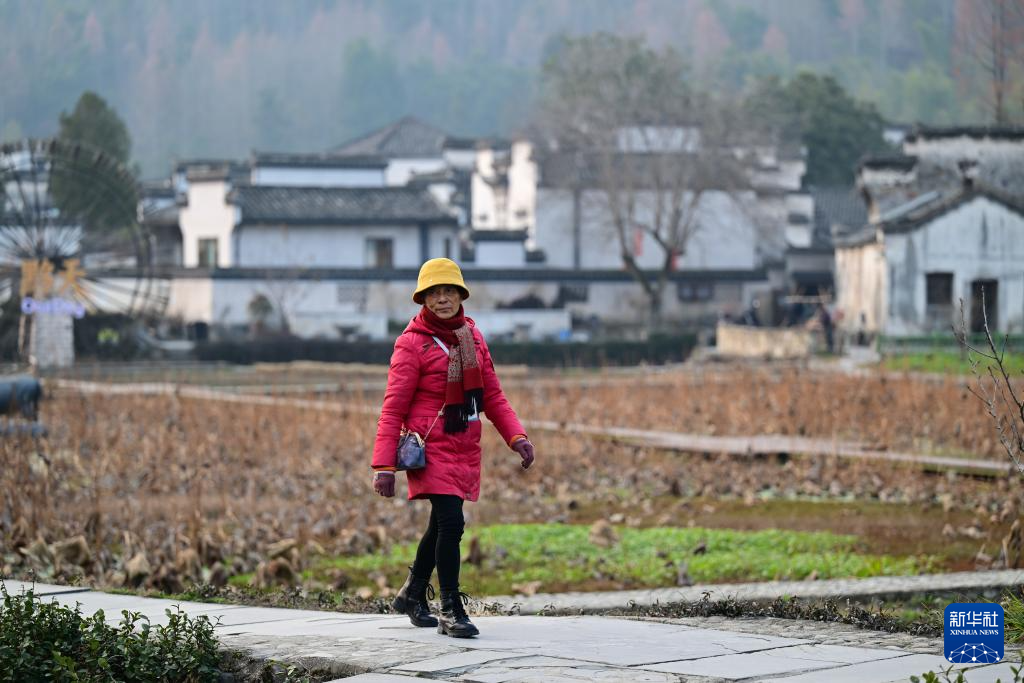 12月18日,胡晓雯在西递村中行走。