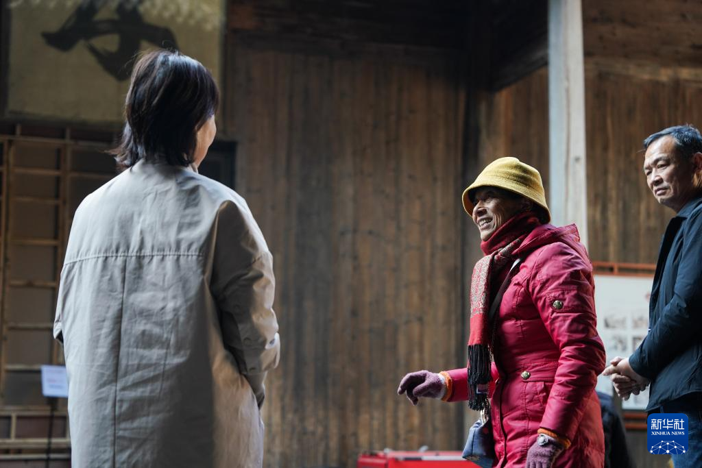 12月18日,胡晓雯在西递村敬爱堂内巡视检查。