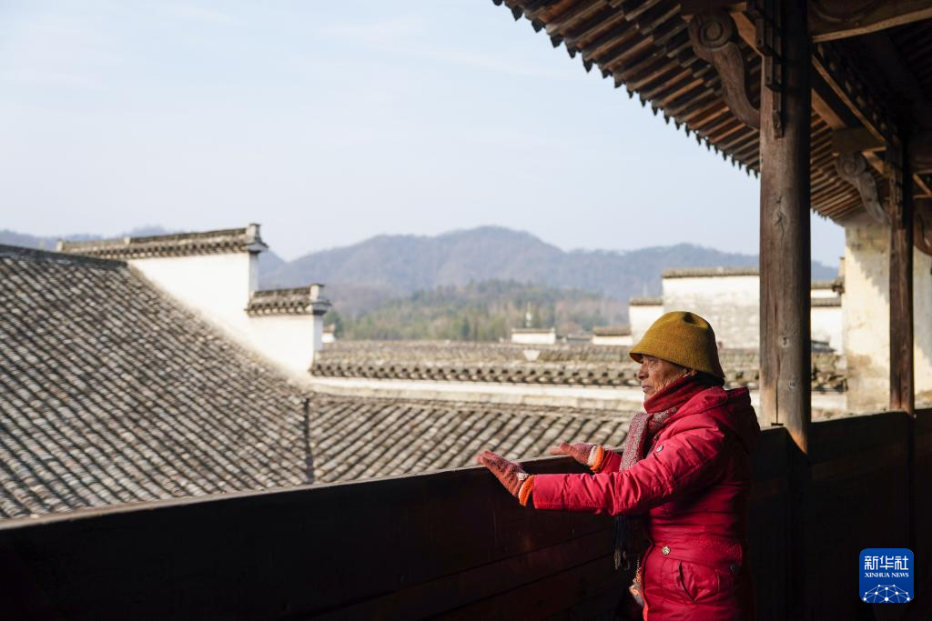 12月18日,胡晓雯在西递村敬爱堂中远眺。