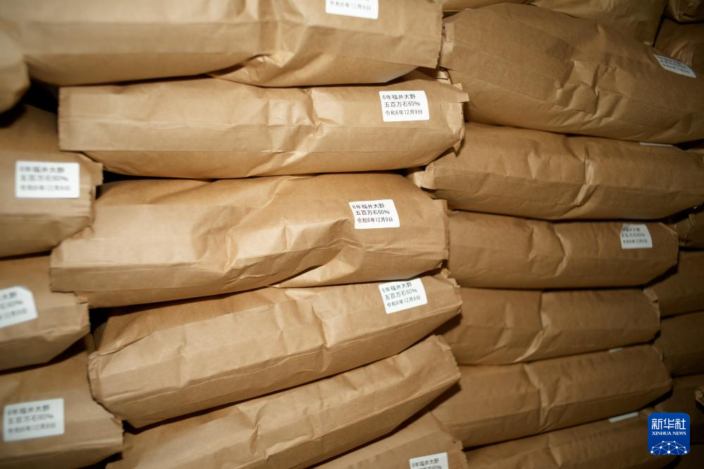 这是12月17日在日本福井县常山酒厂米仓拍摄的清酒原料——产于福井县的大米。