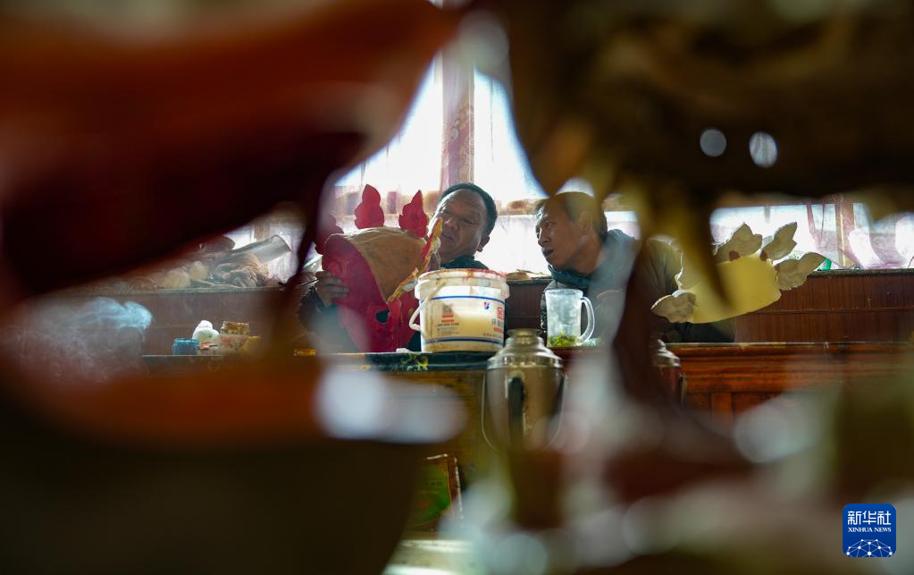 12月9日,拉萨布制面具制作技艺西藏自治区级非遗传承人西洛在合作社门前的空地上和同事一起检查做好的西藏传统面具。西洛是拉萨布制面具制作技艺的西藏自治区级非遗传承人,他制作的面具广泛运用于藏戏表演中。2012年,在政府的扶持下,西洛创办了拉萨市达孜区雪乡扎西岗传统手工艺合作社。近年来,合作社不断吸纳当地群众学习面具制作技艺,不仅为当地群众提供就业机会,同时也助力非物质文化遗产的保护和发展。