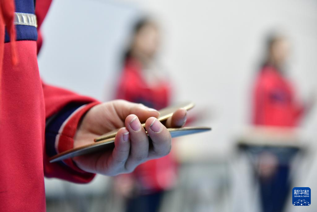 12月30日,在惠民县胡集镇第一小学,同学们学习西河大鼓。