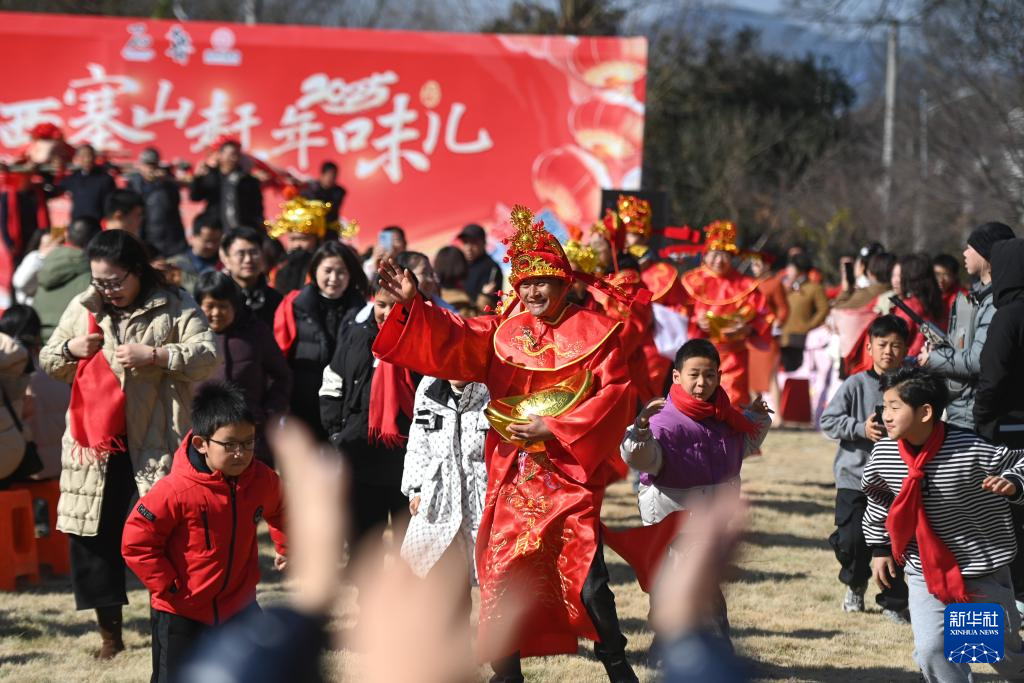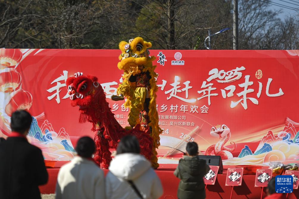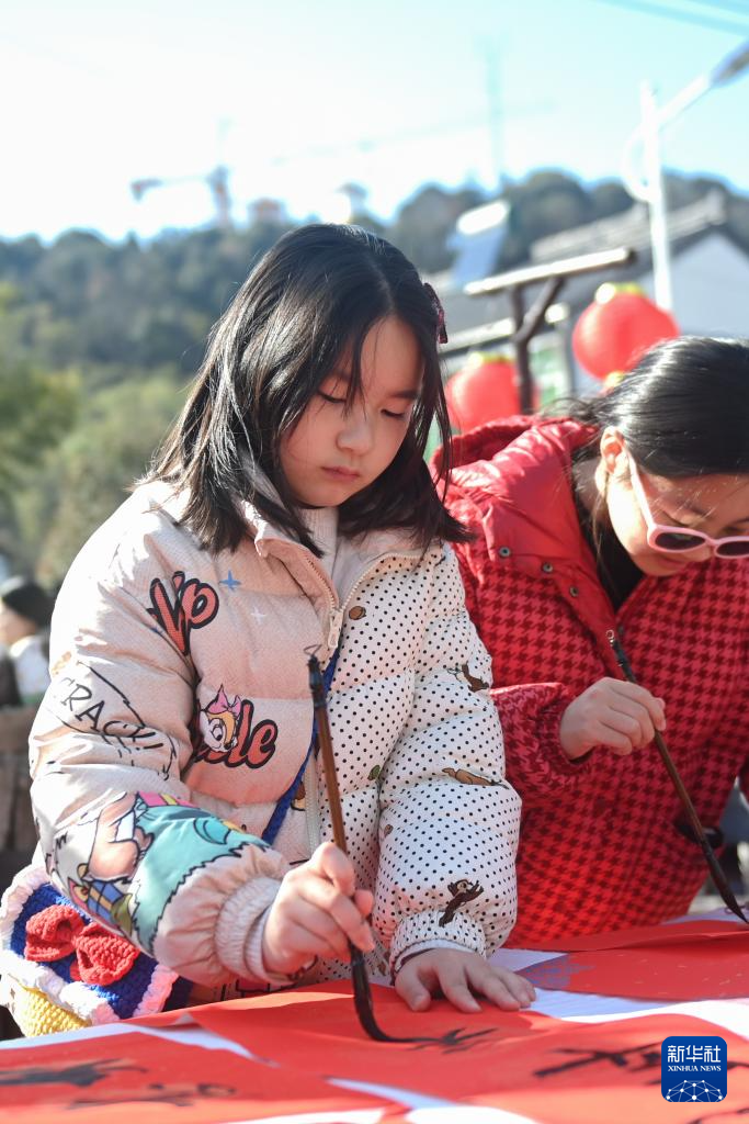 新年临近,浙江省湖州市吴兴区“我在西塞山赶年味儿”乡村联欢会在妙西镇龙山村举行,游客与村民一起看巡游、写春联、品美食,体验乡村传统民俗。