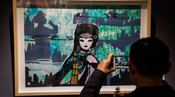 12月30日,在山东青岛吉林路小学开展的“民俗文化迎新年”主题活动上,孩子们在观看学做的非遗木版年画。