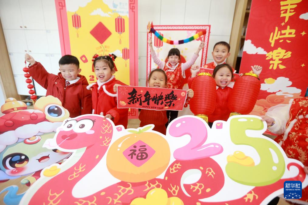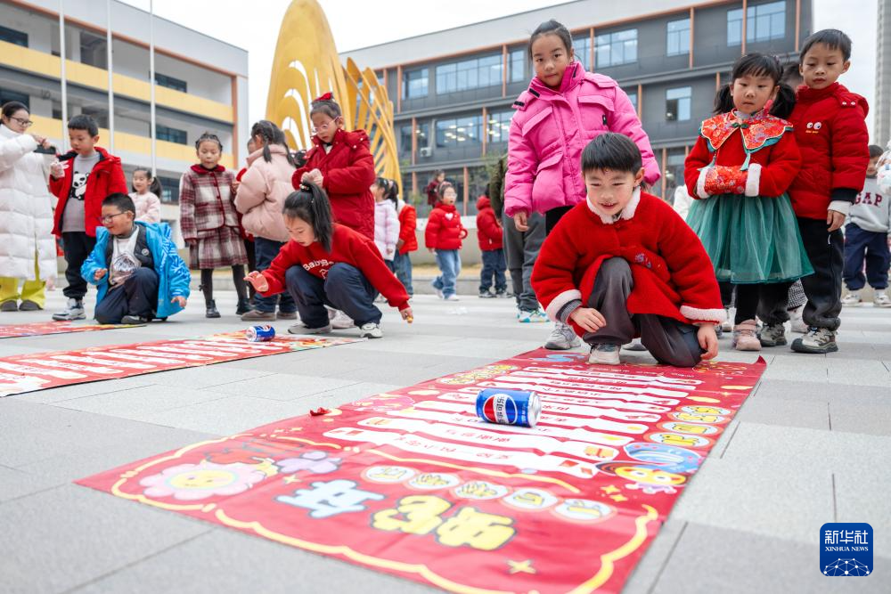 12月30日,湖北省武汉市未来实验小学美林校区的学生们开展“迎新年送祝福”活动。