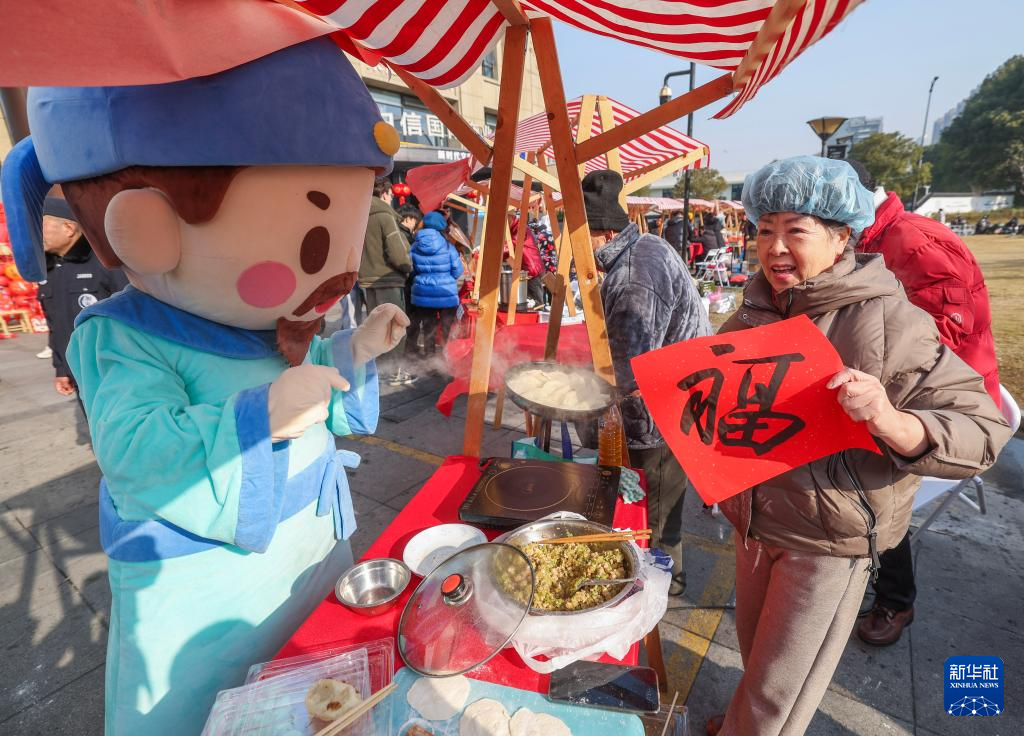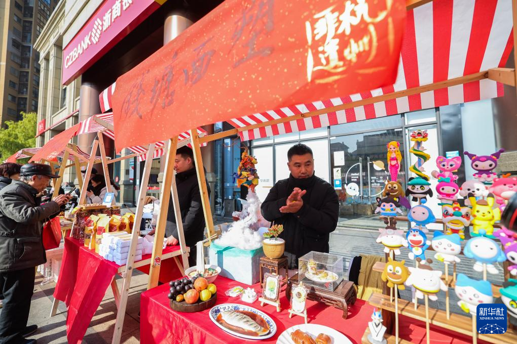 当日,“宋韵思潮 寻迹匠心”杭州非遗年货节在杭州市上城区望江街道日信国际广场开市,现场设置非遗、文创、游艺、民俗、群艺五大板块,汇集非遗项目展示体验,穿插民俗文艺表演,同时推出各地年节美食品尝展销,营造杭州特色的市井年味,让市民游客在欢乐喜庆的气氛中感受年味。