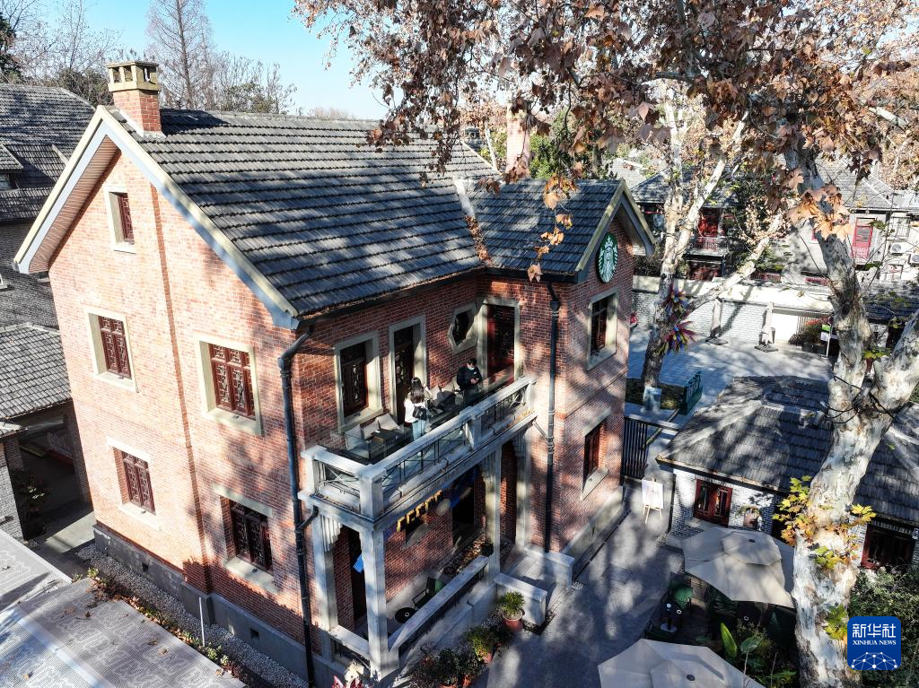 1月10日拍摄的星巴克南京首家非遗概念店——星巴克甄选颐和路十一片区店(无人机照片)。