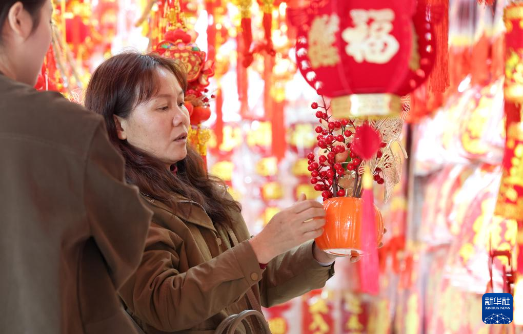1月20日,市民在广州市一德路市场选购春节饰品。