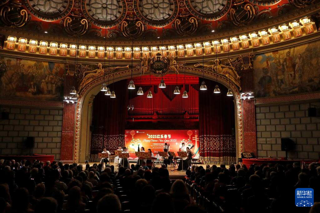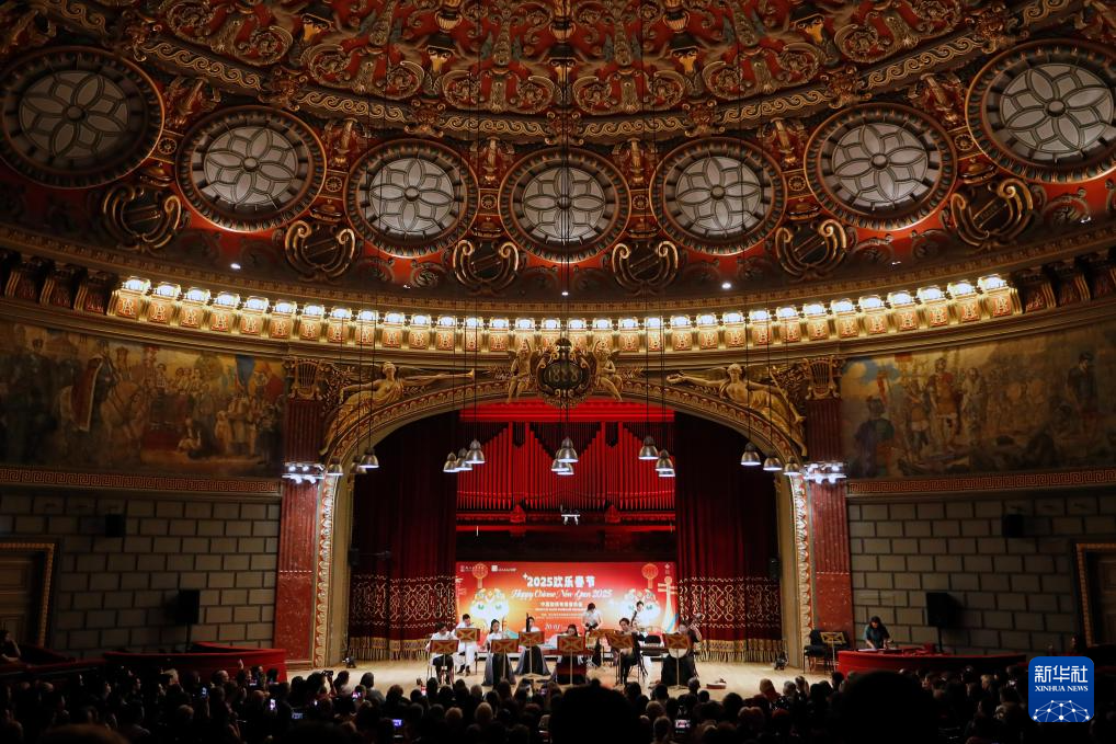 这是1月20日在罗马尼亚首都布加勒斯特的雅典娜音乐厅拍摄的2025“欢乐春节”中国旋律专场音乐会现场。