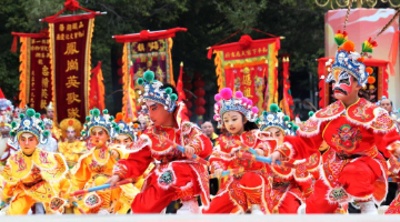 1月31日,游客在山东省临沂市平邑县蒙山龟蒙景区新春庙会上观看舞狮表演。