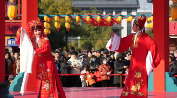 在绍兴市越城区,演员在“绍兴古城过大年”活动上表演越剧《何文秀》选段(1月29日摄)。