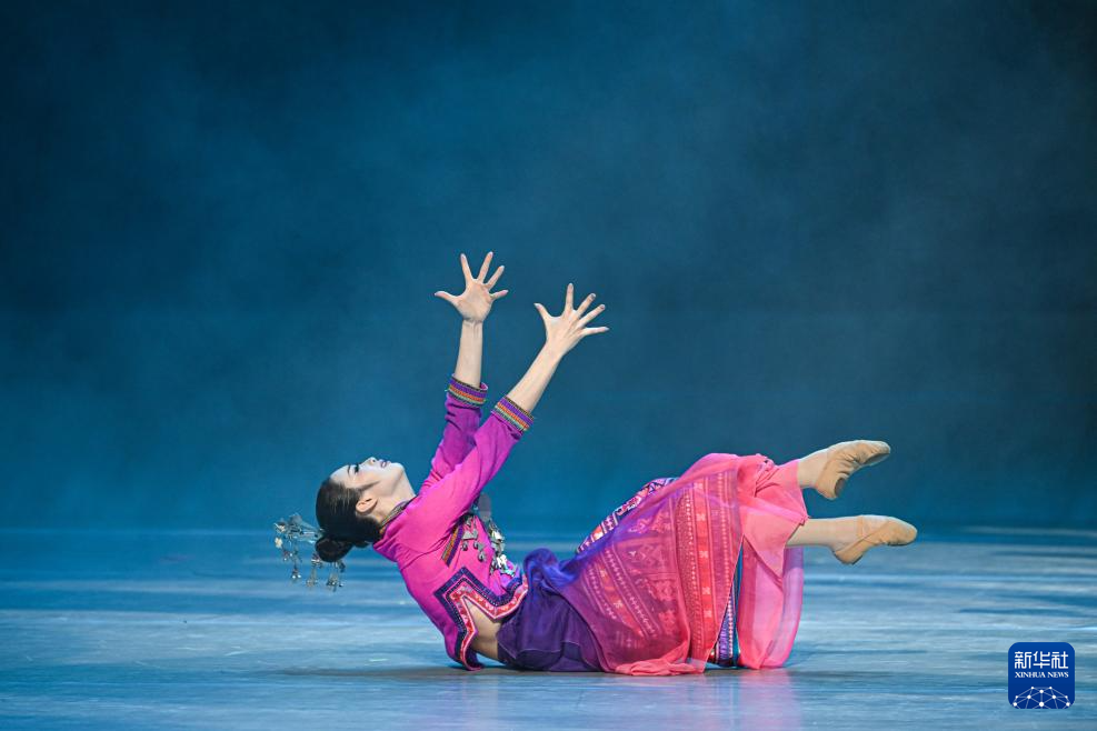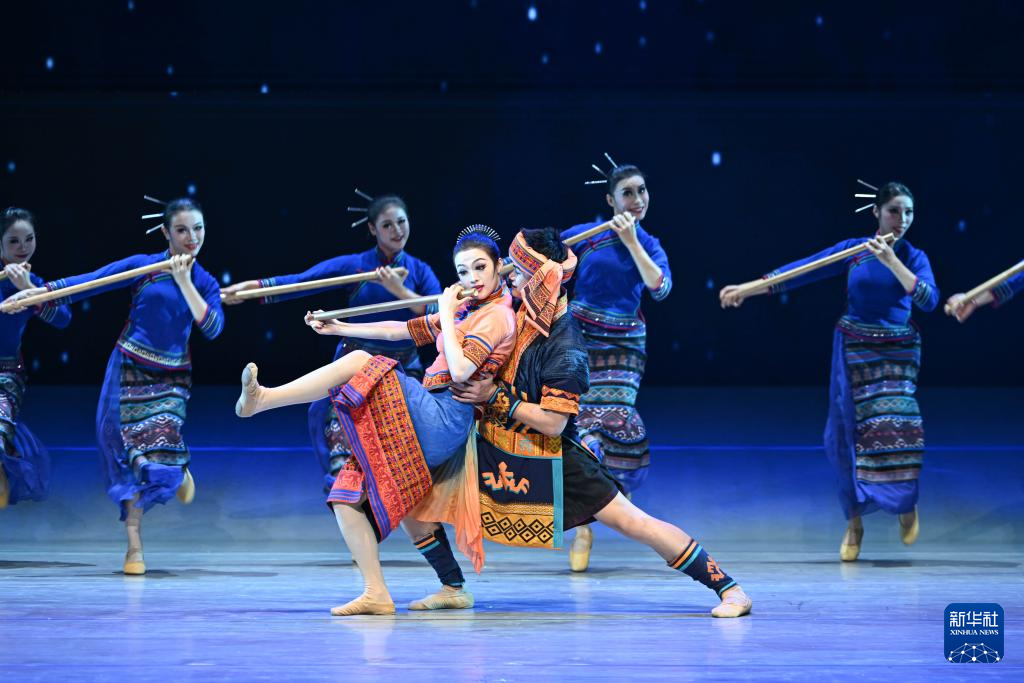 2月8日,演员在位于海口的海南省歌舞剧院表演大型原创民族舞剧《甘工鸟》。