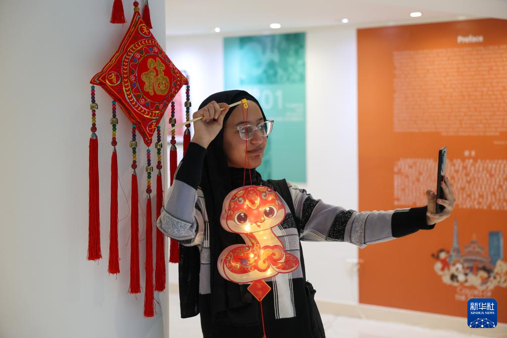 2月12日,在摩洛哥拉巴特,一名女孩体验制作蛇形手提灯笼。
