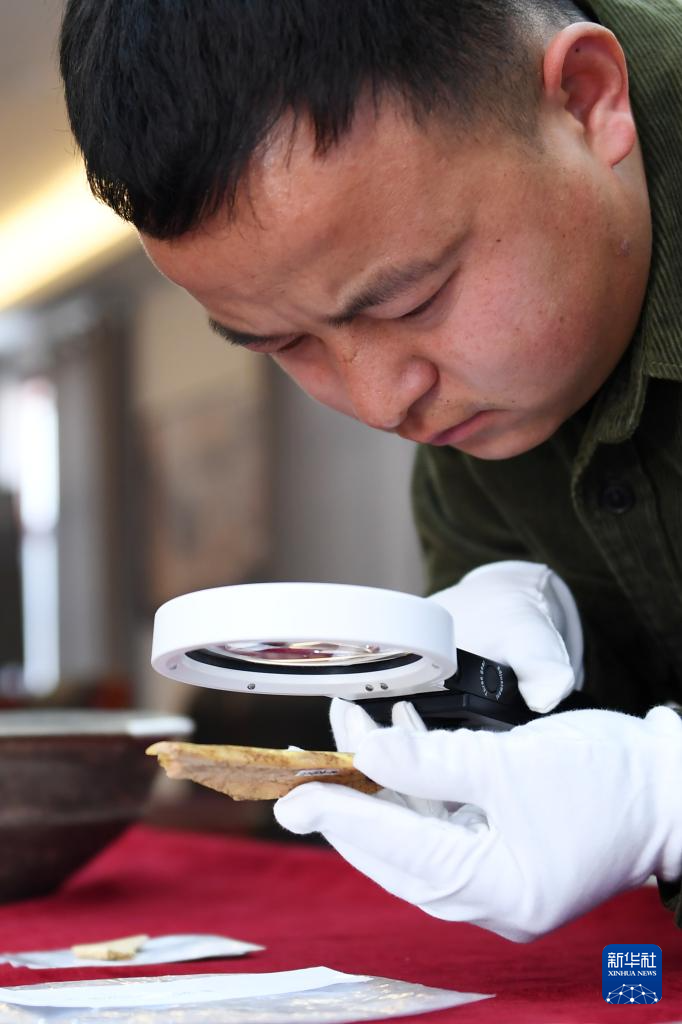 这是2025年2月25日拍摄的周原遗址出土刻辞甲骨。新华社记者 李一博 摄