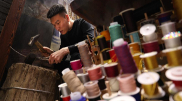 3月18日,“80后”的常德丝弦青年传承人伍恩禹在练习丝弦乐器。