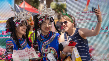 3月17日,“60后”的常德丝弦代表性传承人朱晓玲(左)与“80后”的常德丝弦青年传承人伍恩宇交流。