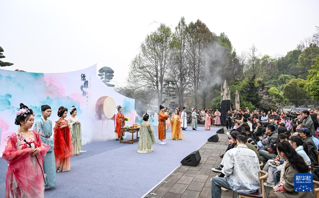 这是3月22日在重庆璧山秀湖公园拍摄的“儒雅璧韵·璧玉唐礼”传统文化礼仪展示活动现场。