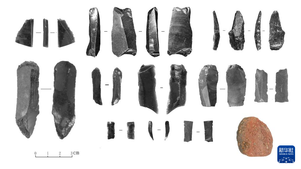 和龙大洞遗址第二期文化层(距今2.8万年-2.4万年)出土石制品(资料照片)。新华社发