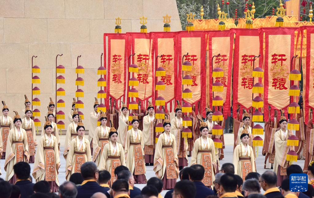 3月31日,演员在乙巳年黄帝故里拜祖大典上表演。