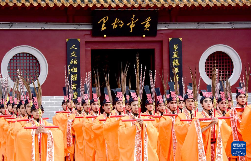 黄帝故里景区庄严肃穆,众多来自海内外的华夏儿女汇聚在这里,共拜轩辕黄帝,祈福祖国繁荣昌盛,祝愿世界和平和睦。典礼仪程共九项,包括盛世礼炮、敬献花篮、净手上香、共拜始祖、恭读拜文、高唱颂歌、乐舞敬拜、祈福中华、天地人和。