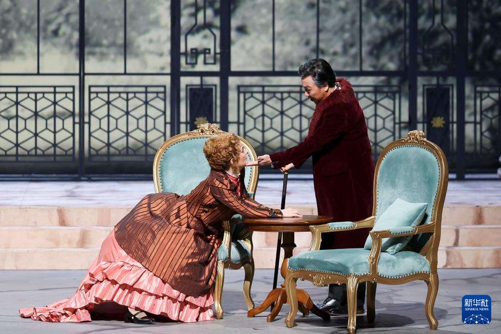 这是4月9日拍摄的第40届上海之春国际音乐节闭幕演出《茶花女》,廖昌永(右)领衔主演。