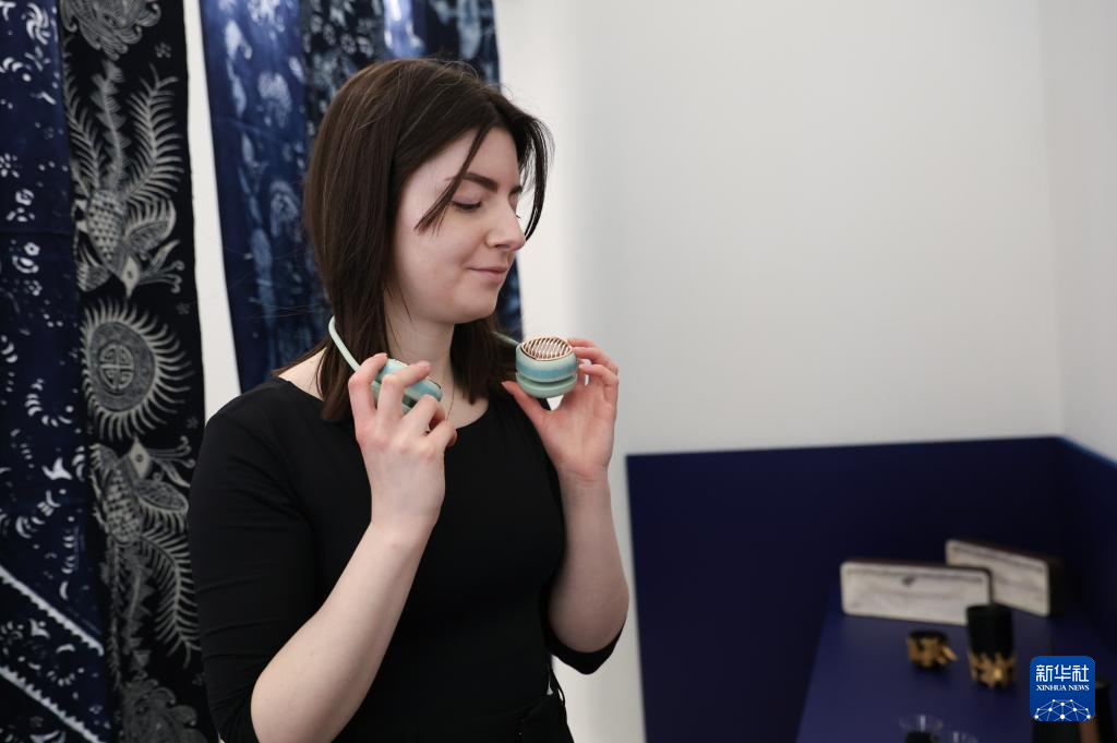 4月12日,在意大利米兰国立大学,人们在顾家家居展区参观体验。