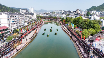 4月15日,云南省西双版纳傣族自治州景洪市澜沧江畔举行傣历新年取水仪式。