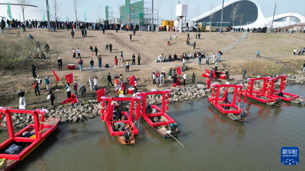 这是4月16日拍摄的2025哈尔滨市开江民俗文化周启动仪式现场(无人机照片)。