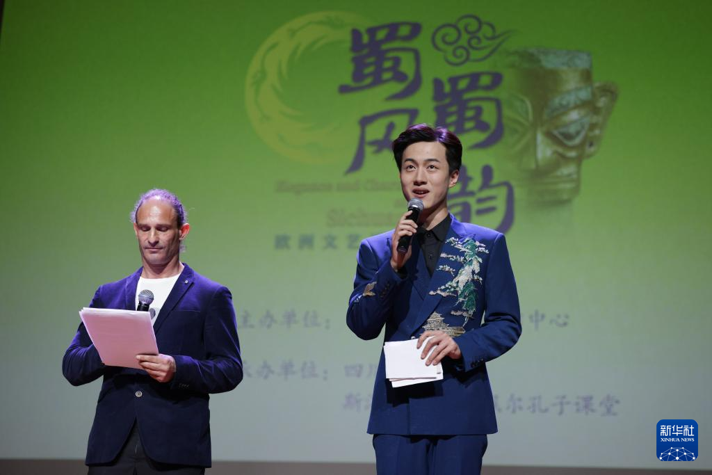 4月14日,在斯洛文尼亚皮兰市,演员表演节目《蜀风蜀韵》。