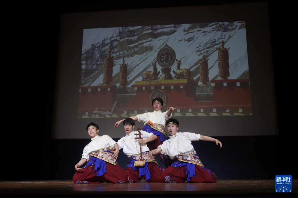 4月14日,在斯洛文尼亚皮兰市,演员表演藏族舞蹈《少年弦歌》。