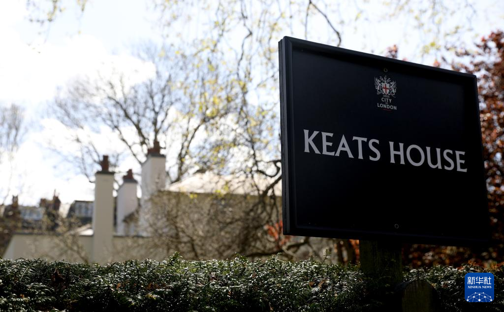 这是4月16日在英国伦敦拍摄的济慈故居门前的指示牌。